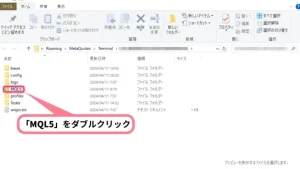 表示されたデータフォルダのなかから、「MQL5」をダブルクリックして開きます。